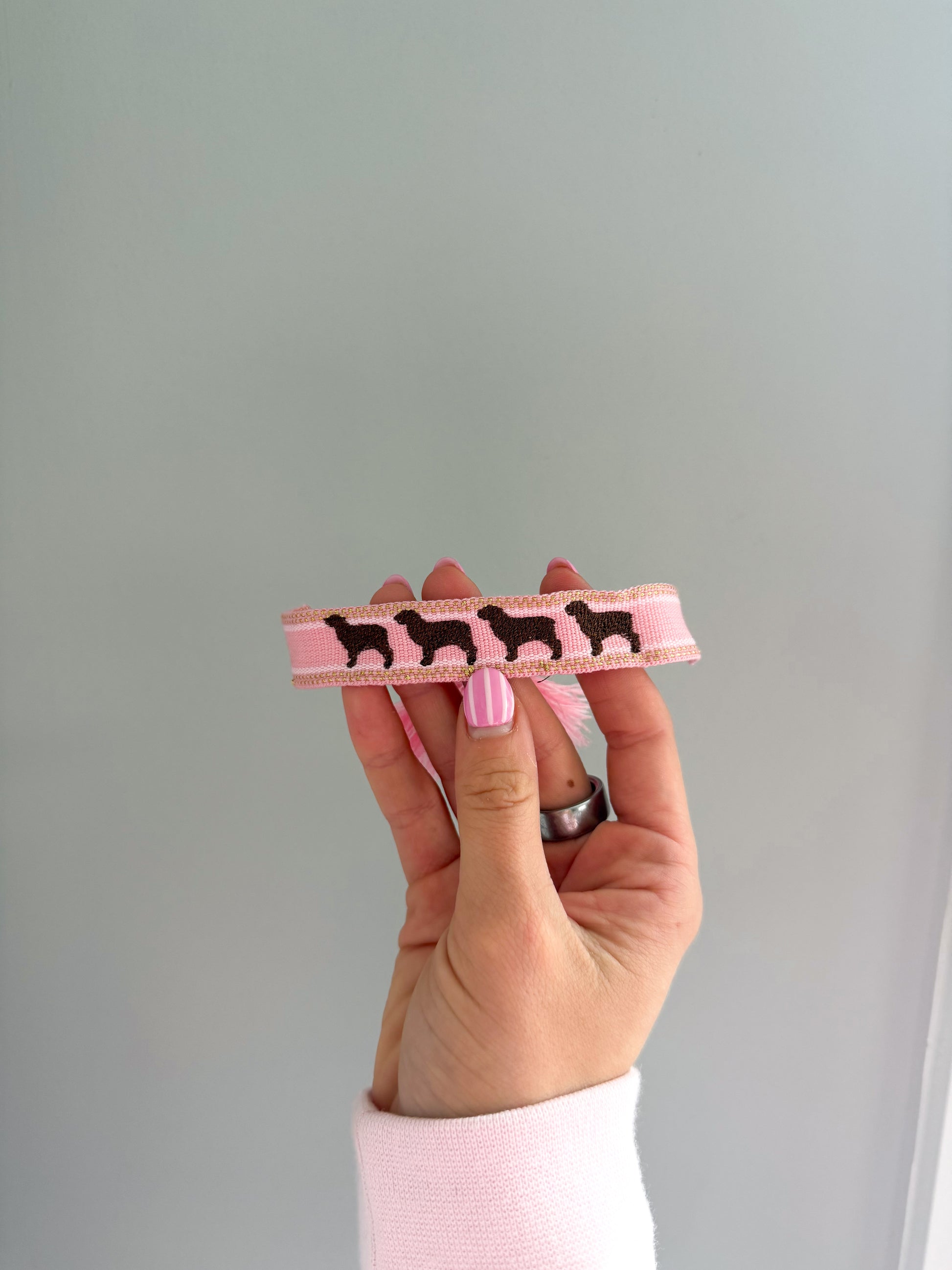 This embroidered bracelet with brown boykin spaniels is perfect for all of our boykin mamas!