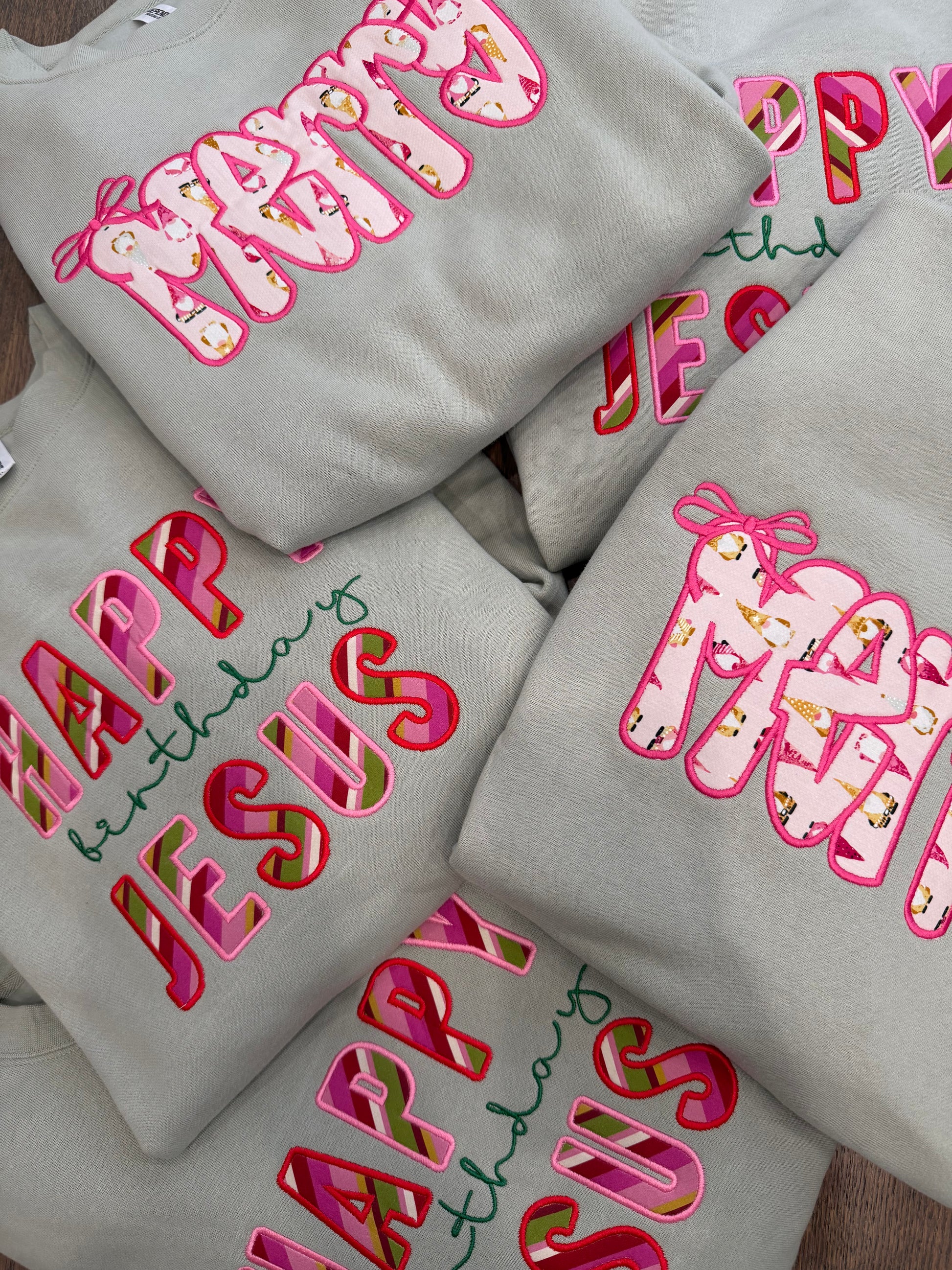Show off the reason for the season in this Happy Birthday Jesus Appliqué embroidered Crewneck!