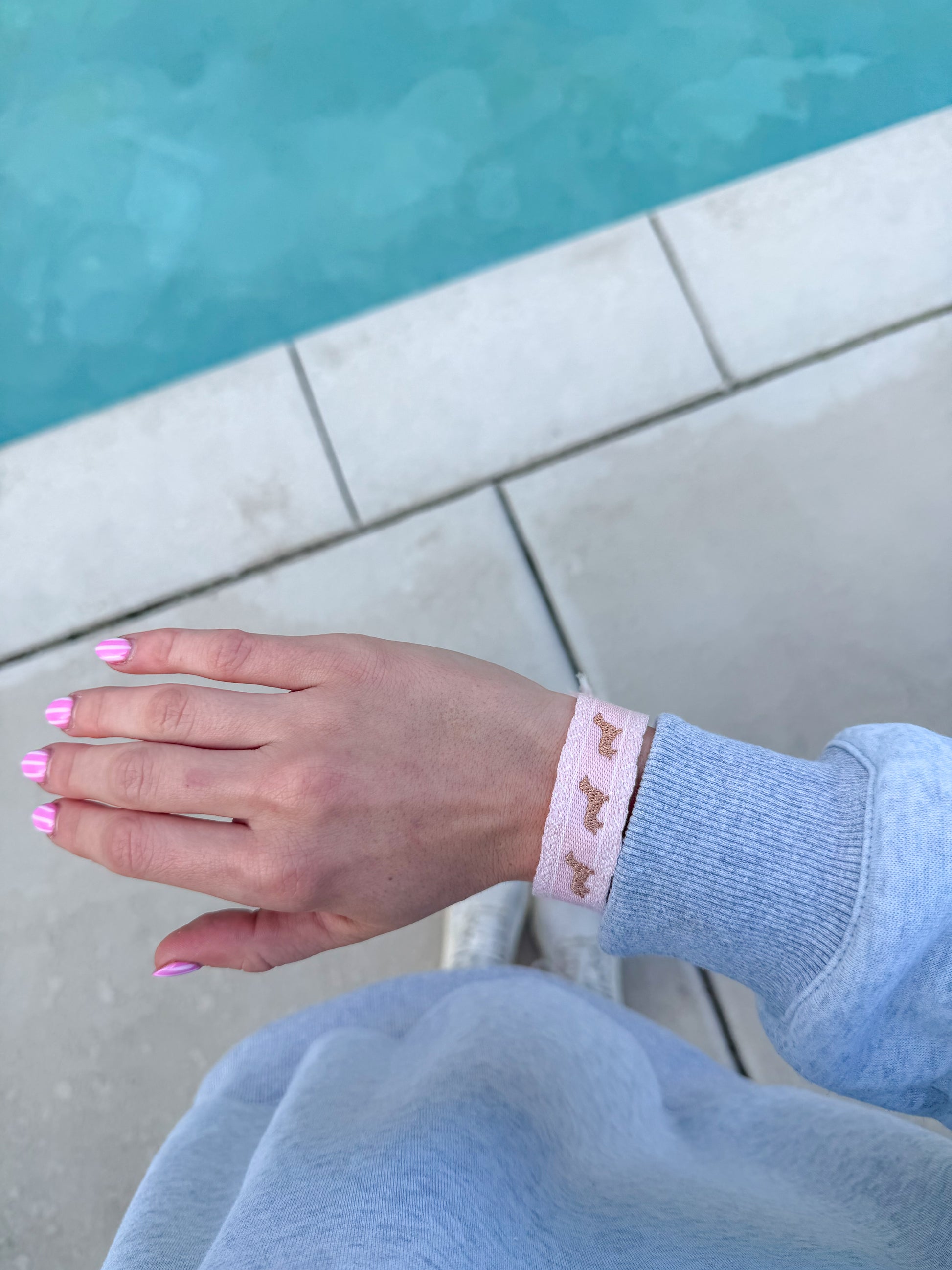 This solid light pink with brown weenie dogs is perfect for all of our weenie dog moms!